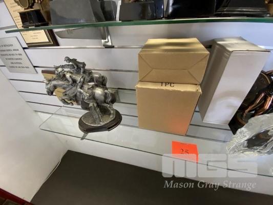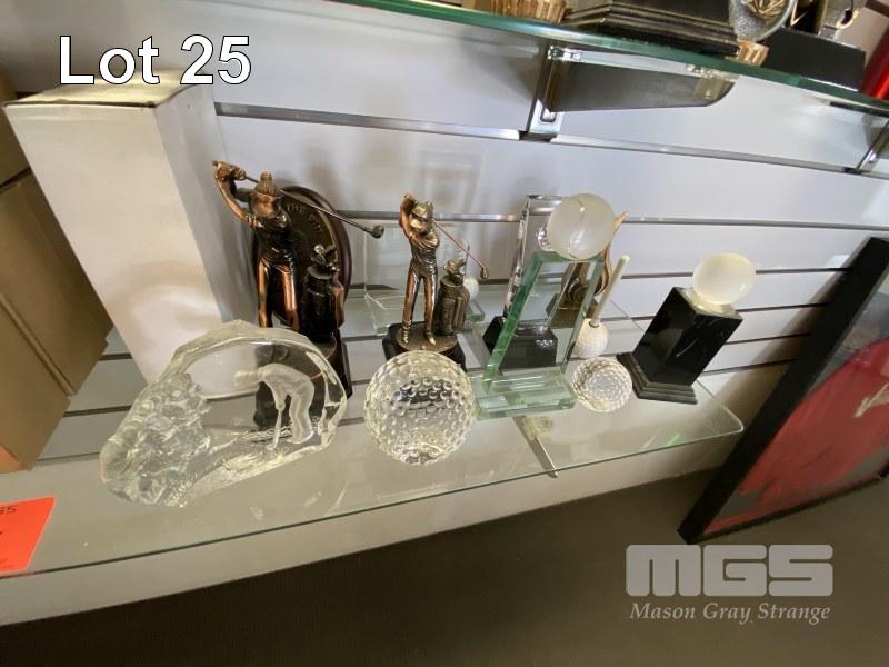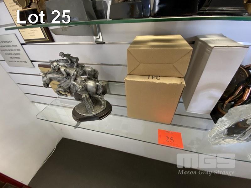 19 ASSORTED TROPHIES, HORSES, GOLF, CONTENTS OF 1 SHELF