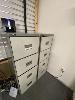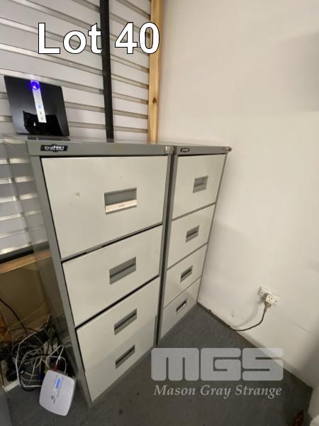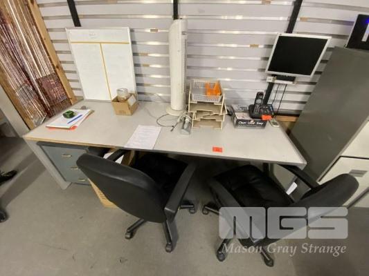 GREY LAMINATE DESK, 2100 x 800mm, 2 x OFFICE CHAIRS, 2 x FILING CABINETS, ELECRTIC HEATER, 3 DRAWER UNDER DESK UNIT