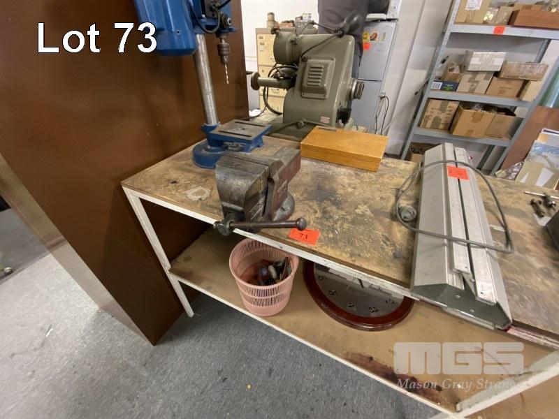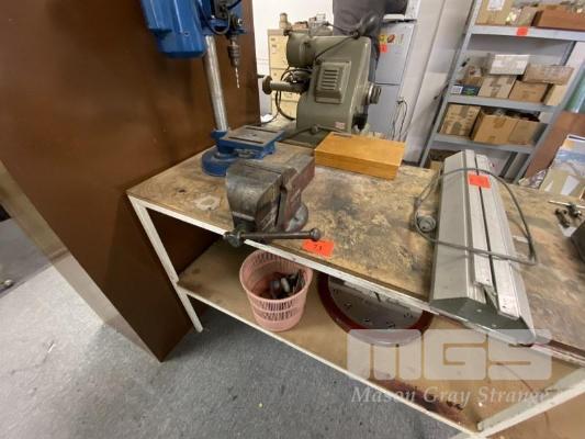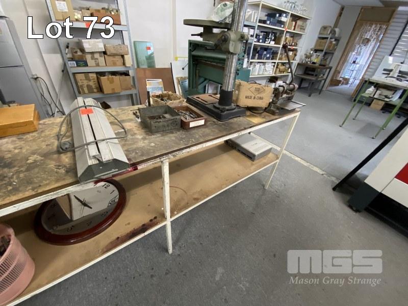 STEEL FRAME BENCH, TIMBER TOP, 2400 x 600 WITH 4" DAWN VICE + 5 1/2" HAND SHEAR