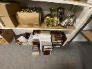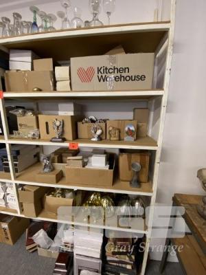 5 SHELVES OF TROPHY COMPONENTS, CUPS, STANDS ETC.
