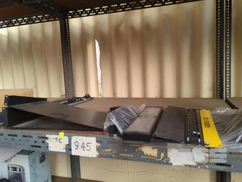 ASSORTED RACK COMPONENTS, TV WALL MOUNT ETC (3 X BAYS).