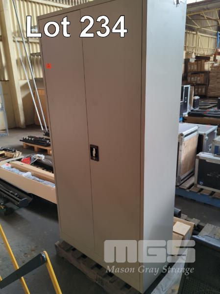 2-DOOR, 5-SHELF METAL STATIONERY CABINET WITH KEY.