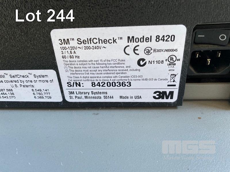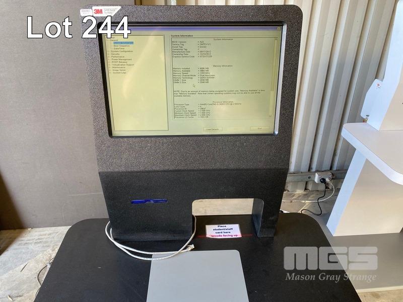 KIOSK, 3M SELFCHECK SYSTEM, MODEL 8420 (BLACK), INCLUDING DELL OPTIPLEX 790 PC, CORE i5 2400S @ 2.5GHz, 4GB RAM, 250GB HDD S/N:2MTDVV1 WITH 19" TOUCHSCREEN DISPLAY, DOCKET PRINTER, BARCODE SCANNER & KEY (NO SOFTWARE) (APPROX SIZE 156 x 85 x 82cm) S/N:84200363