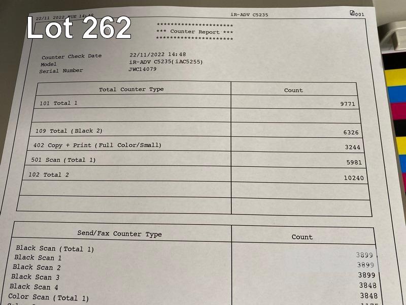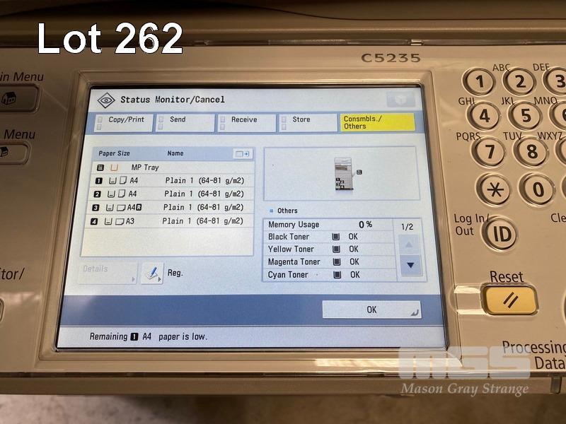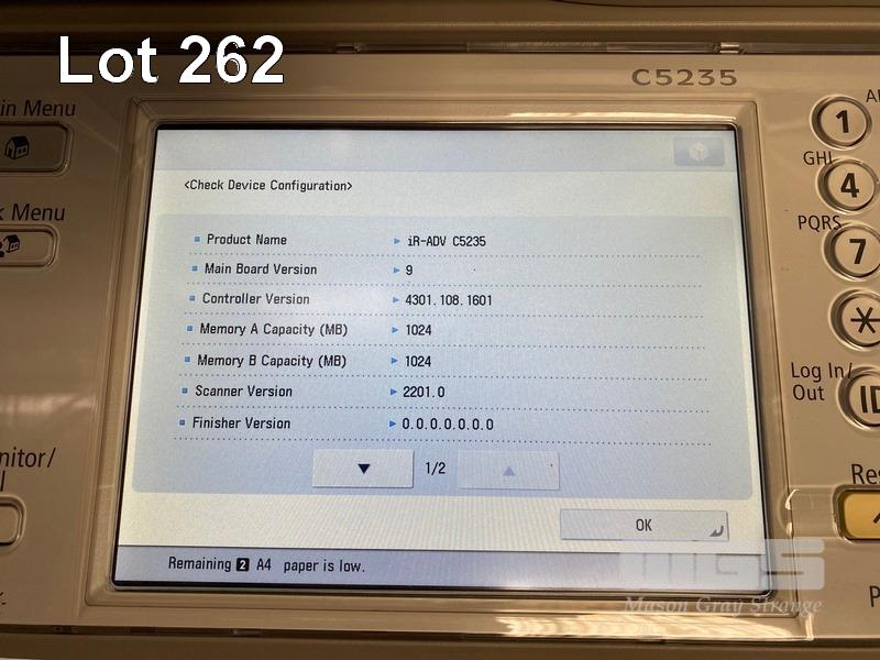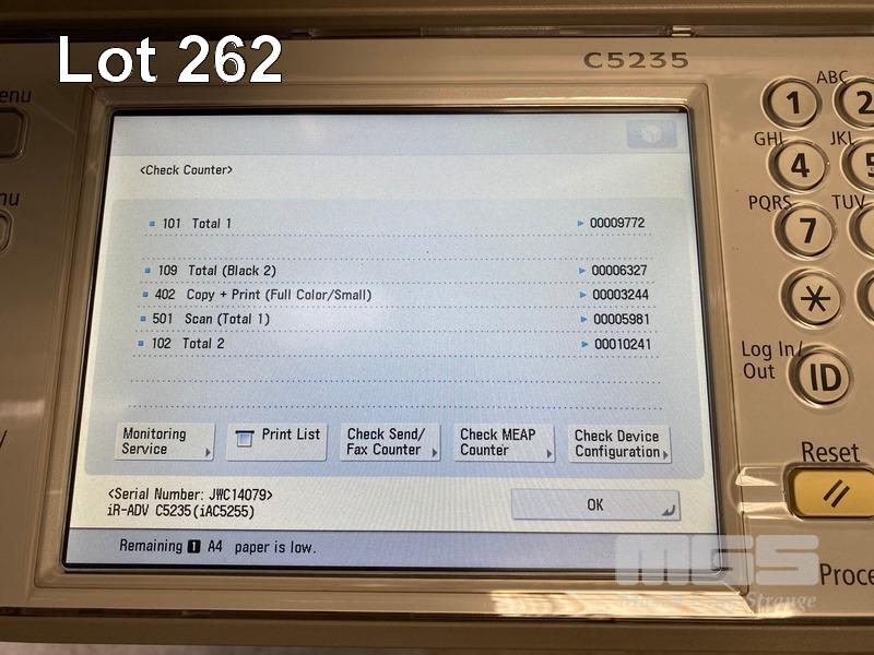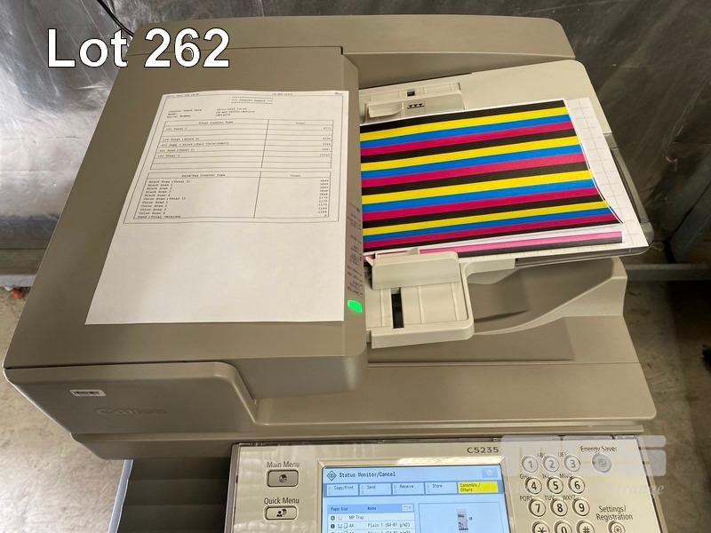 PHOTOCOPIER, CANON imageRUNNER ADVANCE C5235 COLOUR, ADF, PRINTER USB & NETWORK PORTS, 3,244 COLOUR & 6,327 B&W COPIES SHOWING (TEST PAGE ATTACHED) WITH SPARE WASTE TONER BOTTLE S/N:JWC14079