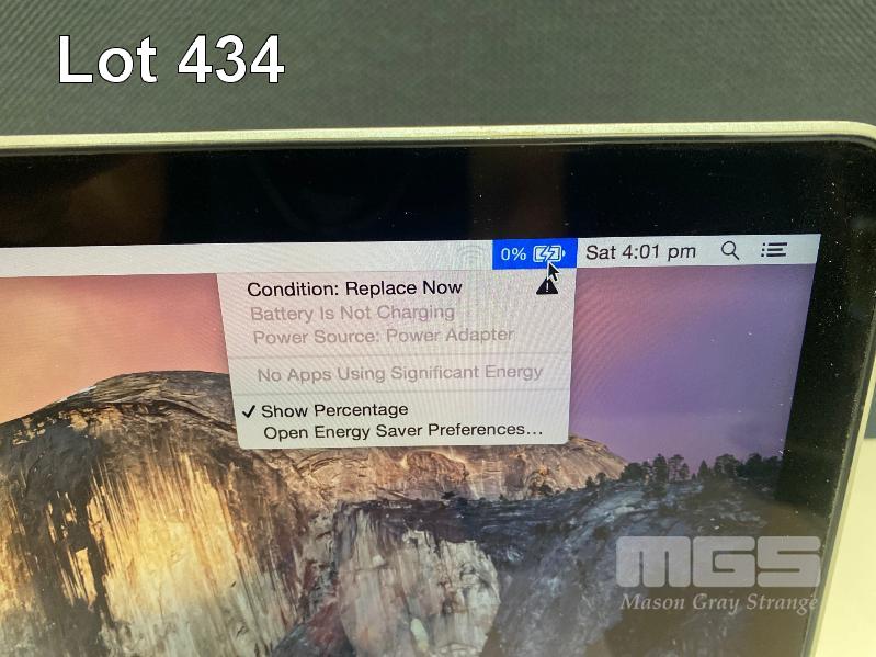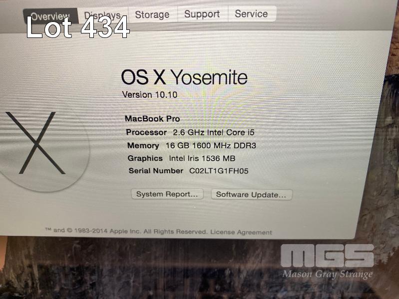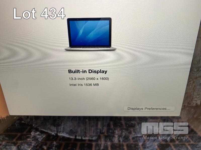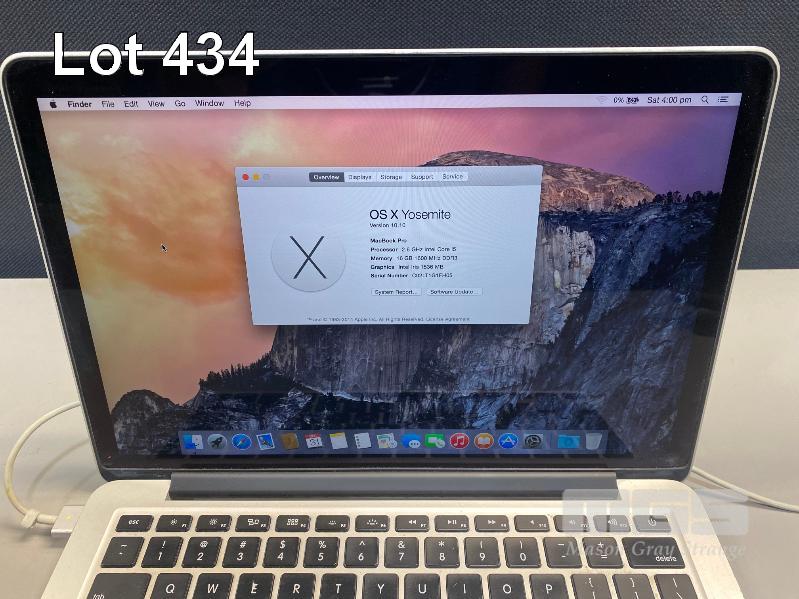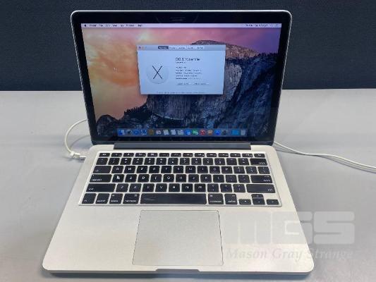 LAPTOP, APPLE MACBOOK PRO (A1502), CORE i5 4288U (4TH GEN) @ 2.6GHz, 16GB DDR3 RAM, 512GB SSD, 13.3" WIDESCREEN (2560x1600), INTEL IRIS GRAPHICS, Wi-Fi, MAC OS 10.10 INSTALLED (NO POWER SUPPLY) (NOTE: BATTERY NOT CHARGING) S/N:C02LT1G1FH05