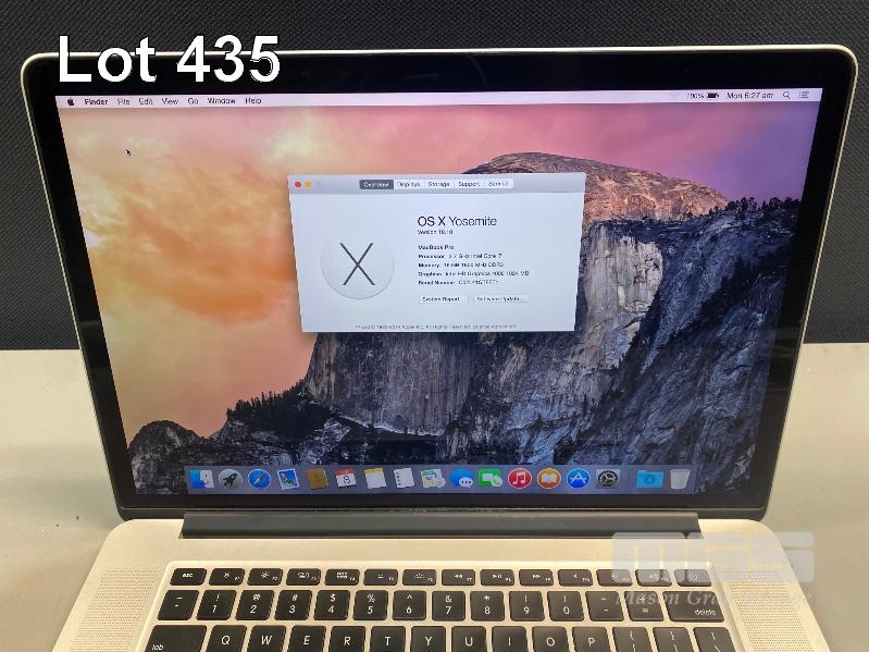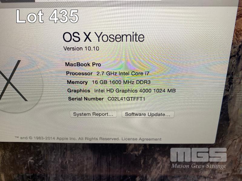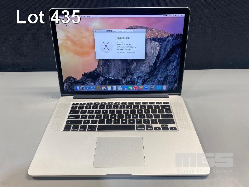 LAPTOP, APPLE MACBOOK PRO (A1398), CORE i7 3740QM (3RD GEN) @ 2.7GHz, 16GB DDR3 RAM, 512GB SSD, 15.4" WIDESCREEN (2880x1800), INTEL HD GRAPHICS 4000, Wi-Fi, MAC OS 10.04 INSTALLED (NO POWER SUPPLY) S/N:C02L41GTFFT1