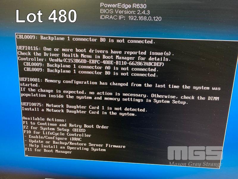 RACKMOUNT SERVER, DELL POWEREDGE R630, 1U, 2 x XEON E5-2650 v3 @ 2.3GHz, 8GB ECC DDR4 RAM, 2 x 73GB SAS HDD, DVD-RW, 2 x 750W PSU (NOTE: MESSAGE BACKPLANE NOT CONNECTED, NO NETWORK CARD) (NO CABLES) S/N:2LFRY42