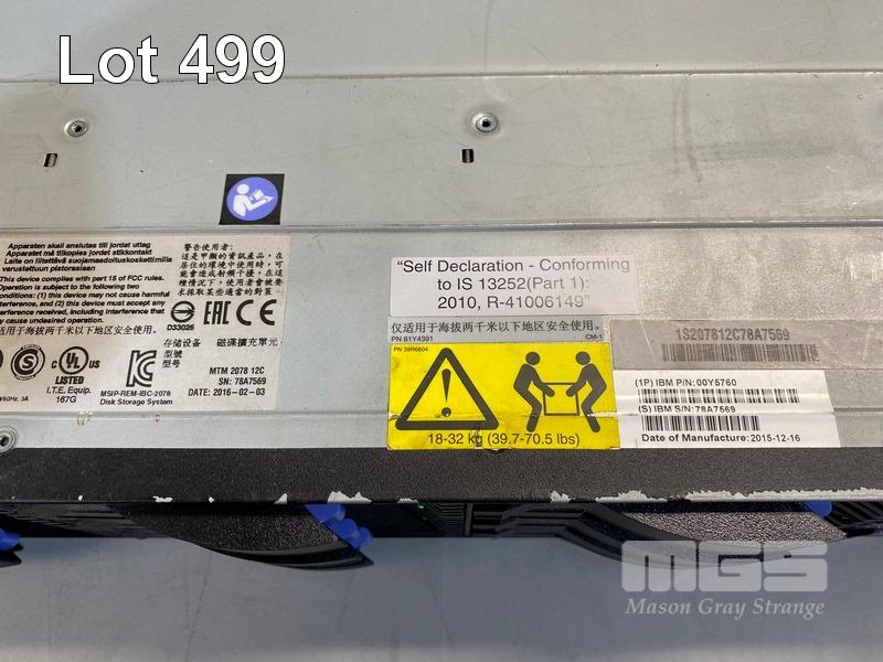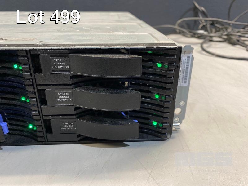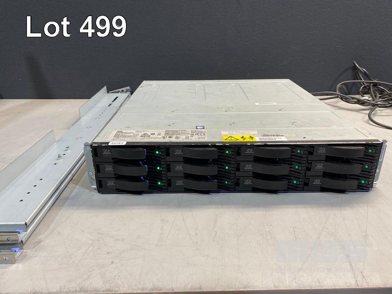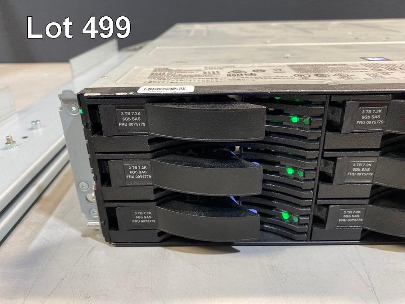 RACKMOUNT STORAGE ARRAY, IBM STORWIZE V5000 (2078-12C), 2U, 12 x 3TB SAS HDD, 2 x 00RY384 CONTROLLERS, 2 x PSU WITH RAILS (NO CABLES) S/N:78A7569