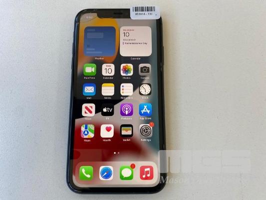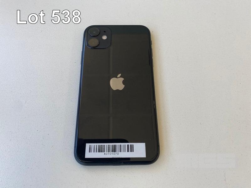 APPLE iPHONE 11, 128GB, BLACK, MODEL MHDA3X/A (NO CHARGER, NO CABLE) (NOTE: DAMAGED CORNER OF SCREEN) S/N:DX3DR94VN73D