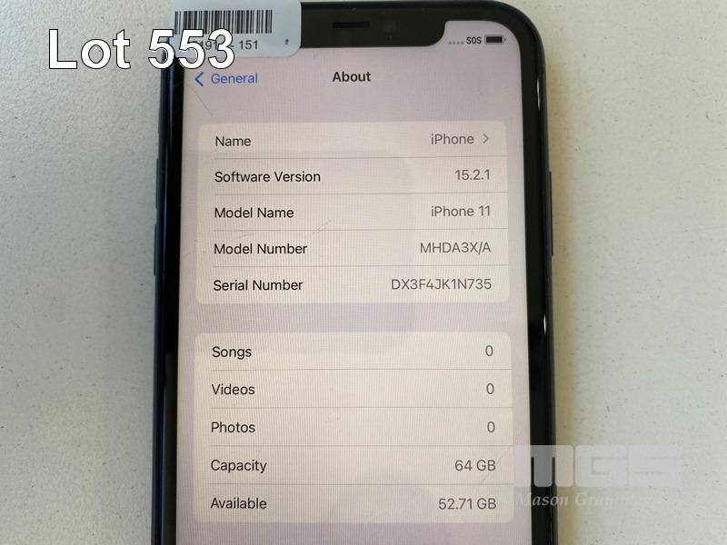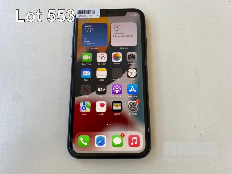 APPLE iPHONE 11, 64GB, BLACK, MODEL MHDA3X/A (NO CHARGER, NO CABLE) (NOTE: SCRATCHES ON SCREEN) S/N:DX3F4JK1N735
