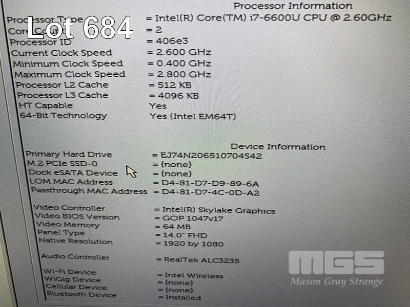 LAPTOP, DELL LATITUDE E7470, CORE i7 6600U (6TH GEN) @ 2.6GHz, 16GB DDR4 RAM, 512GB M.2 SSD, 14" WIDESCREEN (1920x1080), INTEL SKYLAKE GRAPHICS, Wi-Fi, BLUETOOTH, WINDOWS 10 HOME INSTALLED, DOCKING STATION & POWER SUPPLY S/N:53FG4H2
