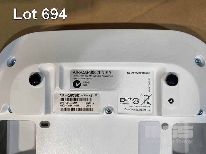 45 x CISCO AIRONET 3600 SERIES WIRELESS ACCESS POINTS, AIR-CAP3602I-N-K9 WITH BRACKETS