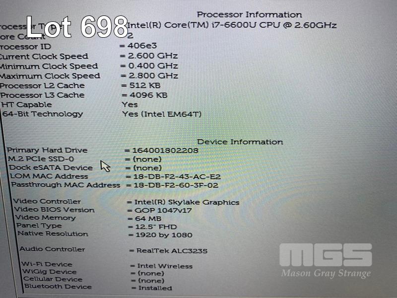 LAPTOP, DELL LATITUDE E7270, CORE i7 6600U (6TH GEN) @ 2.6GHz, 16GB DDR4 RAM, 256GB M.2 SSD, 12.5" WIDESCREEN (1920x1080), INTEL SKYLAKE GRAPHICS, Wi-Fi, BLUETOOTH, WINDOWS 10 HOME INSTALLED & POWER SUPPLY S/N:HY4STC2