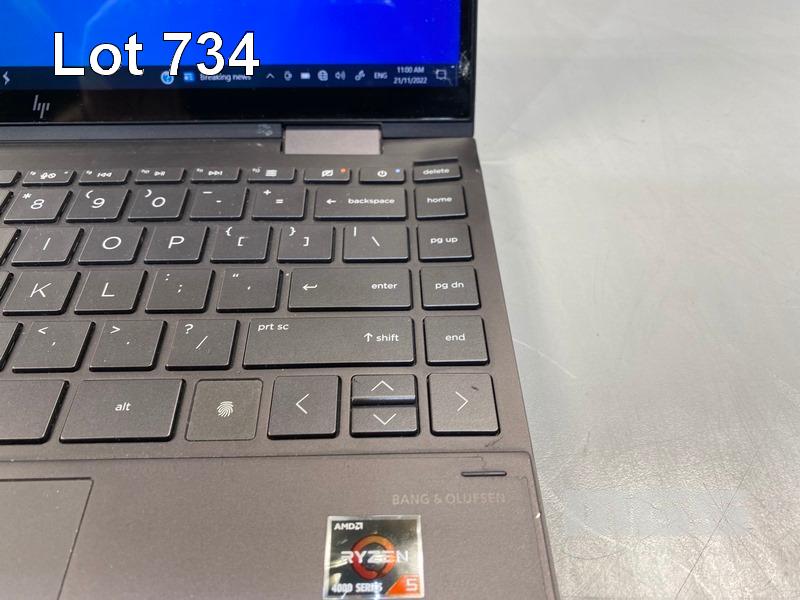 LAPTOP, HP ENVY x360 (1B8Y6PA), AMD RYZEN 5 4500U WITH RADEON GRAPHICS @ 2.3GHz, 8GB DDR4 RAM, 512GB NVMe M.2 SSD, 13.3" TOUCHSCREEN (1920x1080), Wi-Fi, BLUETOOTH, WINDOWS 10 HOME INSTALLED & POWER SUPPLY (NOTE: DAMAGED SCREEN & CASING) S/N:CND0418B4T