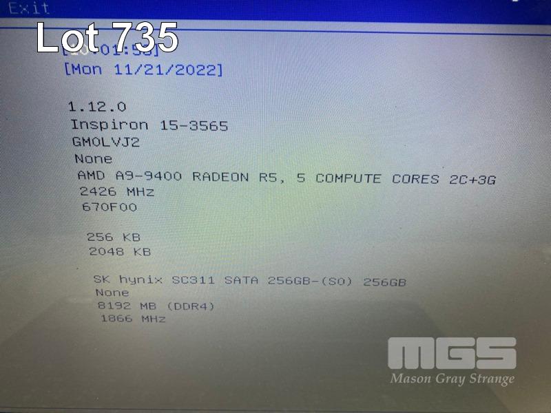 LAPTOP, DELL INSPIRON 15-3565, AMD A9-9400 RADEON R5, 5 COMPUTE CORES @ 2.4GHz, 8GB DDR4 RAM, 256GB SSD, 15.6" WIDESCREEN (1366x768), INTEL HD VIDEO, Wi-Fi, BLUETOOTH, WINDOWS 10 HOME INSTALLED & POWER SUPPLY S/N:GM0LVJ2