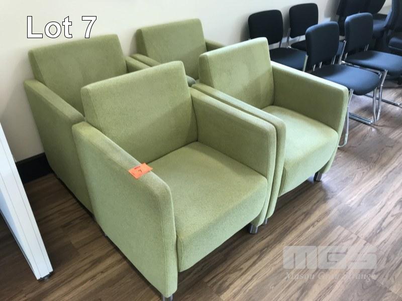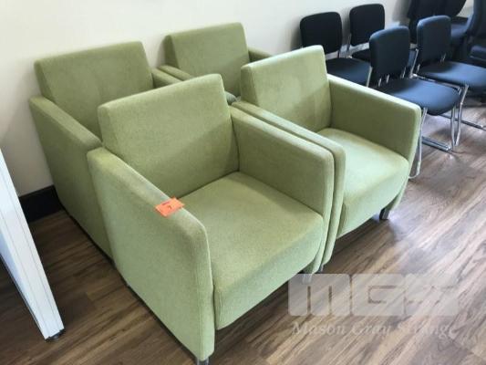 4 X GREEN FABRIC UPHOLSTERED VISITORS ARMCHAIRS