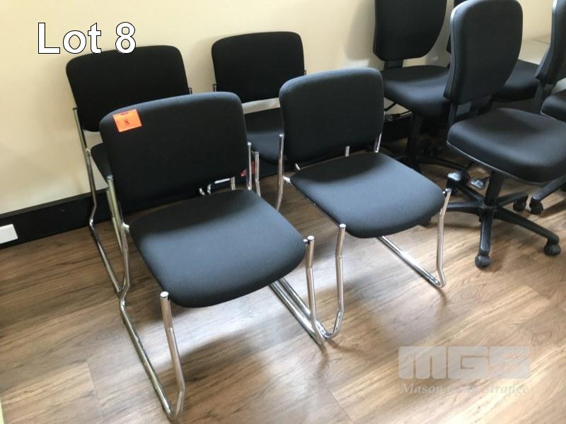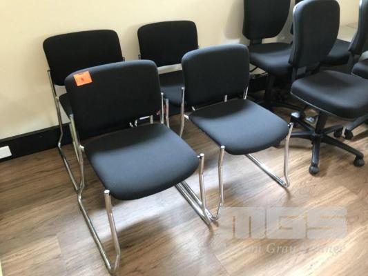 SET OF 4 VISITORS CHAIRS, CHROME FRAMED, BLACK FABRIC UPHOLSTERED