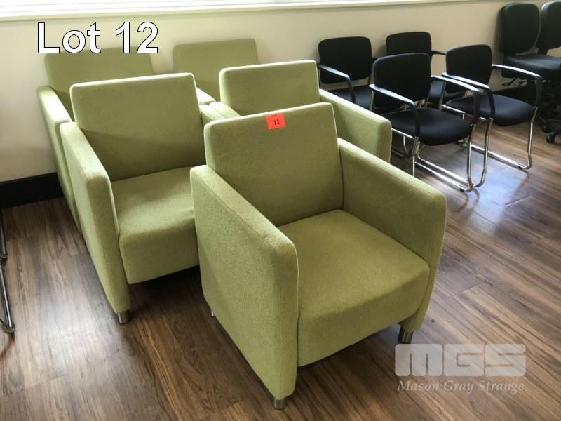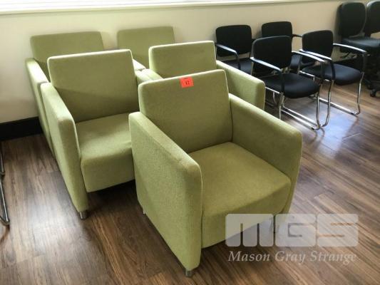 5 X GREEN FABRIC UPHOLSTERED VISITORS ARMCHAIRS