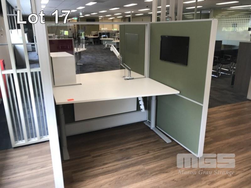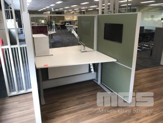 CONSULTING DESK, 2 PERSON, SCHIAVELLO, WITH ELECTRIC ERGONOMIC DESKS, DOCUMENT COMPARTMENT, MONITOR ARM, CPU BRACKET, PERSPEX SCREEN, PRIVACY PARTITIONS WITH BUILT IN ACER 24 INCH MONITOR