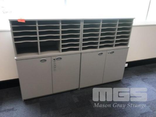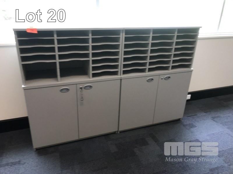 PAIR OF DOCUMENT PIGEONHOLE UNITS, SCHIAVELLO, GREY LAMINATE WITH 2 DOOR UNDERSTORAGE