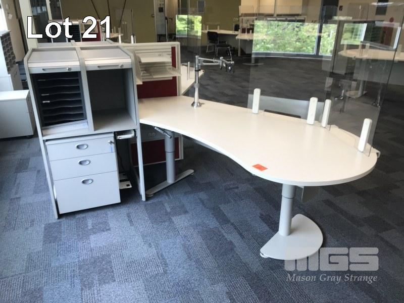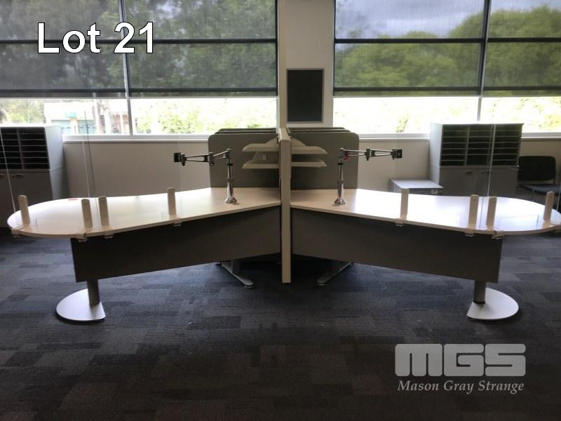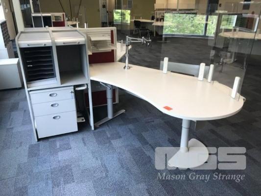 DOUBLE WORKSTATION, SCHIAVELLO, WITH ERGONOMIC DESKS, DOCUMENT COMPARTMENT, DUAL MONITOR ARM, CPU BRACKET, PERSPEX SCREEN, PRIVACY PARTITIONS & UNDERDESK MOBILE