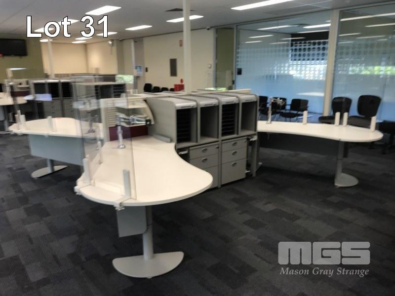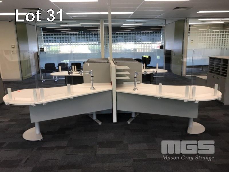 4 PERSON WORKSTATION, SCHIAVELLO, WITH ERGONOMIC DESKS, DOCUMENT COMPARTMENT, DUAL MONITOR ARM, CPU BRACKET, PERSPEX SCREEN, PRIVACY PARTITIONS & UNDERDESK MOBILE