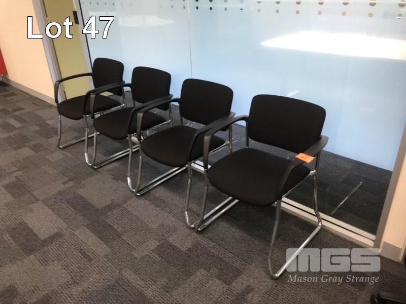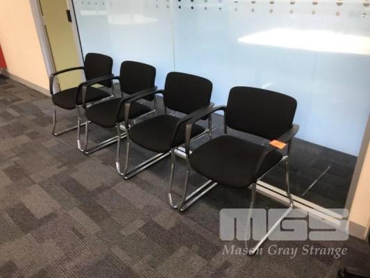 SET OF 4 VISITORS ARMCHAIRS, CHROME FRAMED, BLACK FABRIC UPHOLSTERED