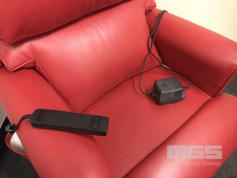 RED VINYL UPHOLSTERED ELECTRIC RECLINER
