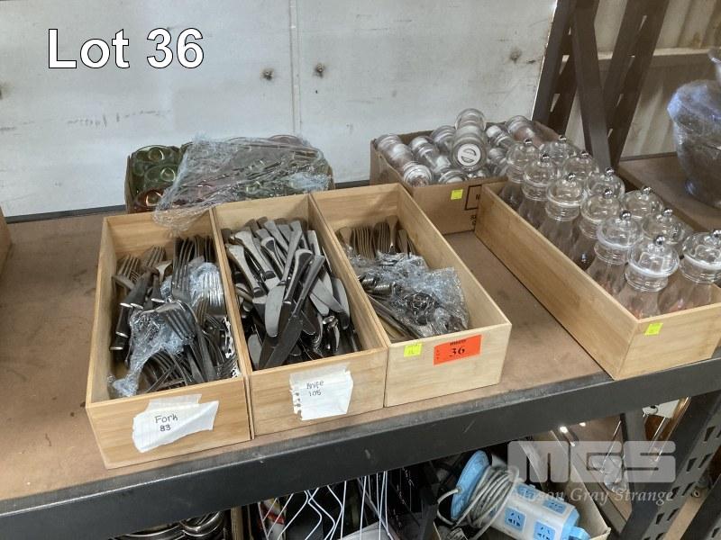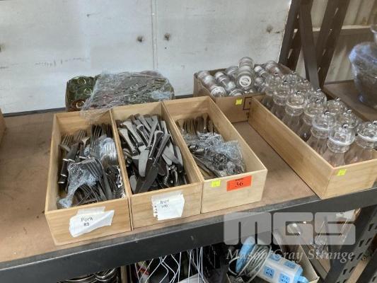 KNIVES, FORKS, SPOONS & SALT & PEPPER SHAKERS