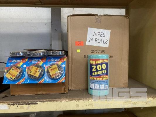 24 x ROLLS HEAVY DUTY WIPES & BOX OF SCOURERS