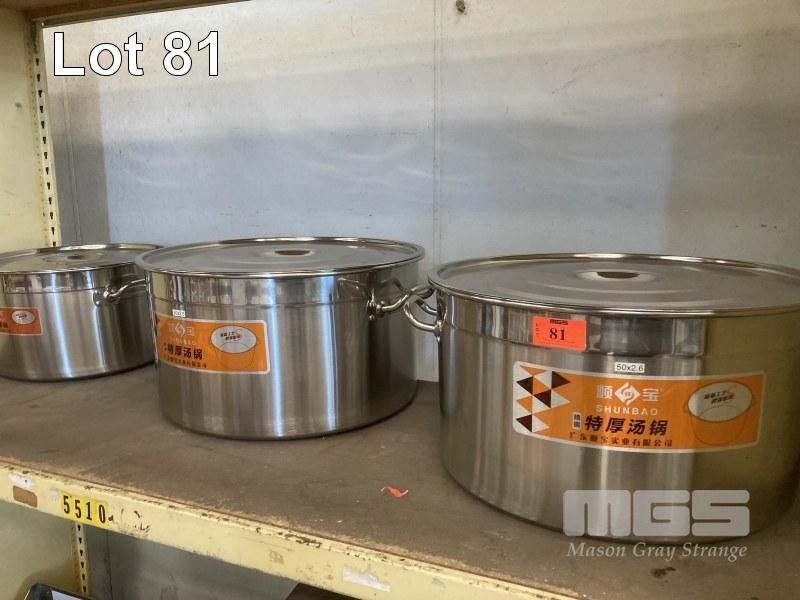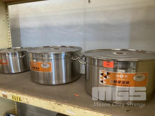 3 x STAINLESS STEEL STOCK POTS, 40 & 50cm