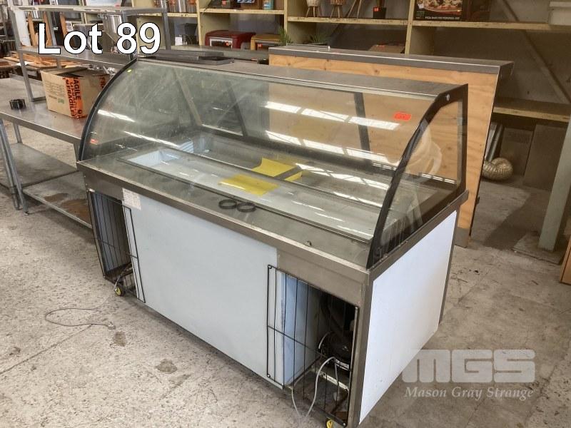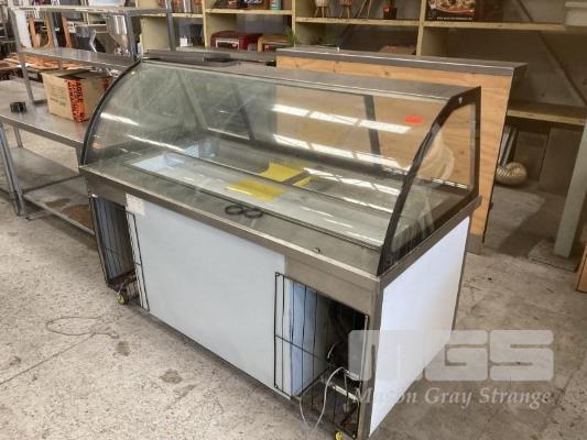 COLD FOOD DISPLAY, 180cm, 2 DOOR, BOW GLASS STAINLESS STEEL CASED, TWIN UNIT, 240V (NOTE: CHINESE IMPORT)