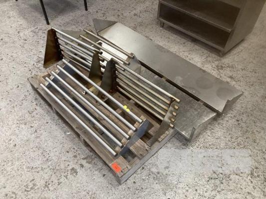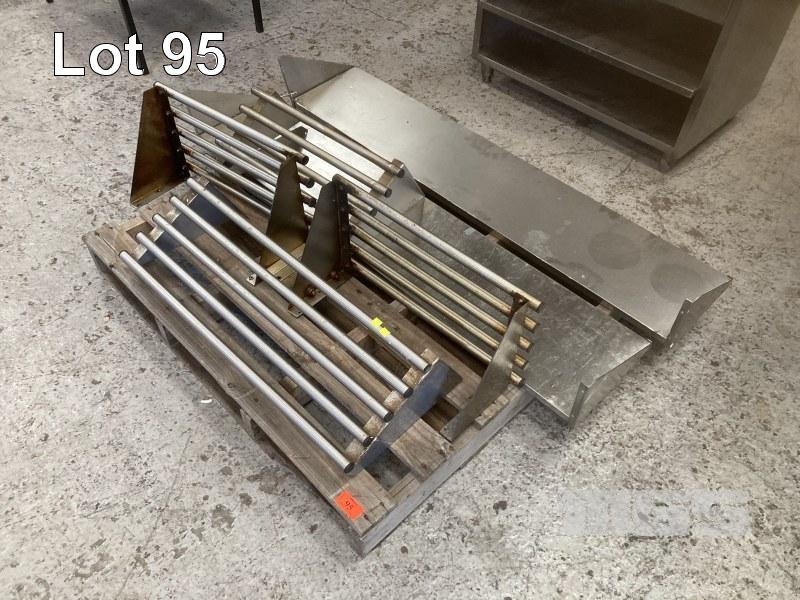 4 X PIPE POT RACKS 1 X 85CM, 3 X 60CM & 2 WALL SHELVES 150CM