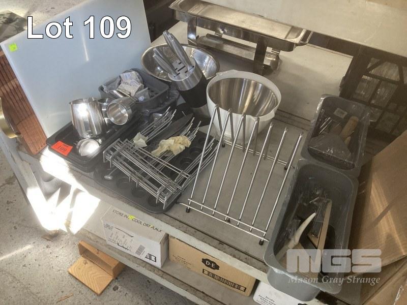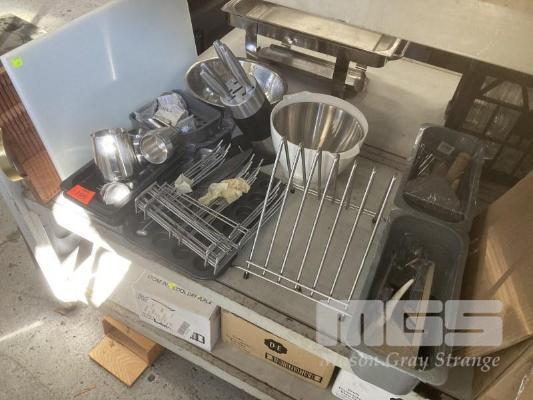 KITCHEN UTENSILS, GLASS RACK, BOWLS, ETC