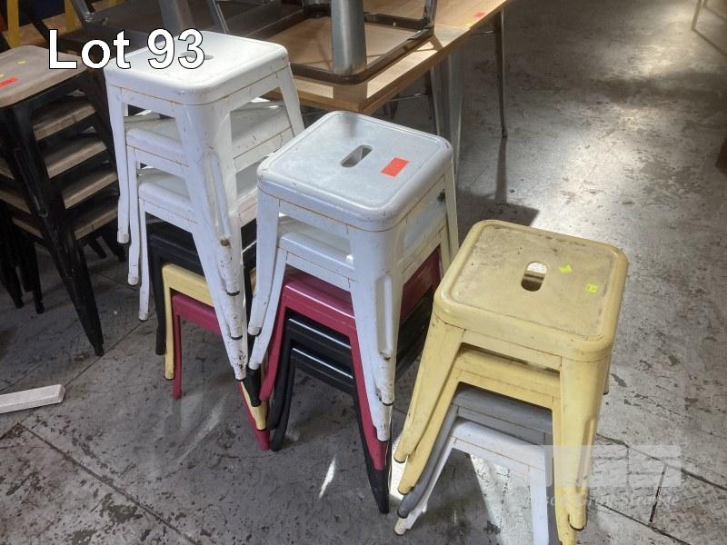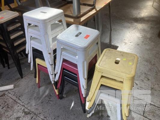 15 x LOWLINE STOOLS, METAL FRAME, ASSORTED COLOURS