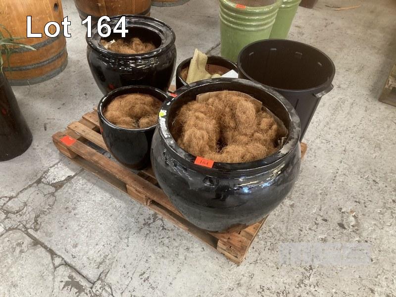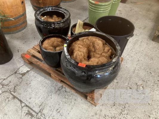 4 x ASSORTED GLAZED PLANTER POTS, BLACK