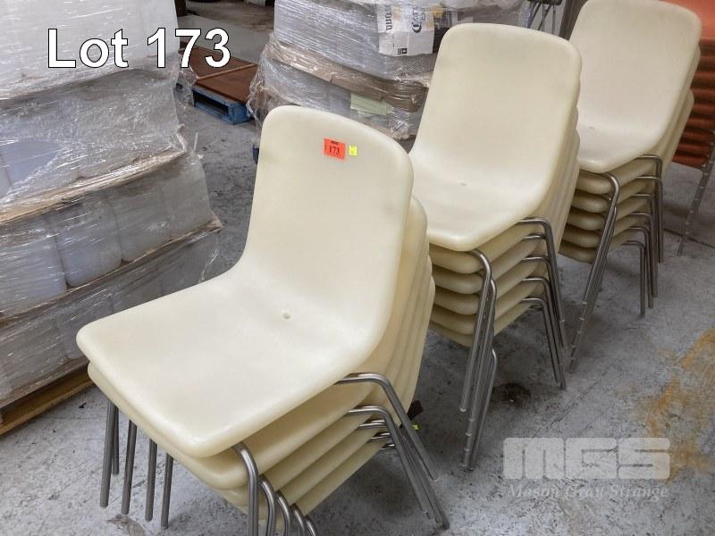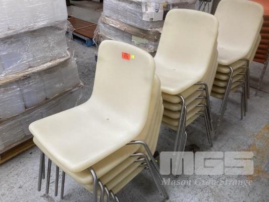 17 X STACKING PVC OUTDOOR CHAIRS, CREAMISH