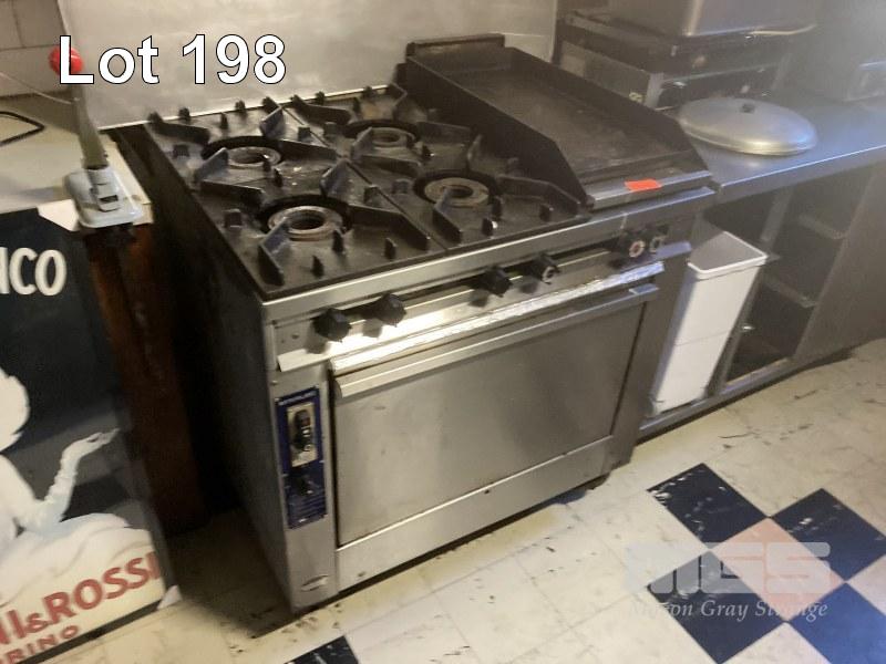 OVEN RANGE, STERLEC, 6 BURNER WITH HOT PLATE, GAS. SOLD INSITU - 186 PORT ROAD, HINDMARSH, BUYER TO REMOVE