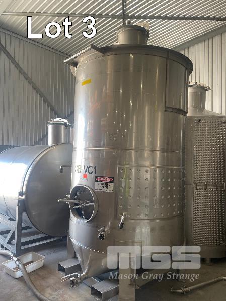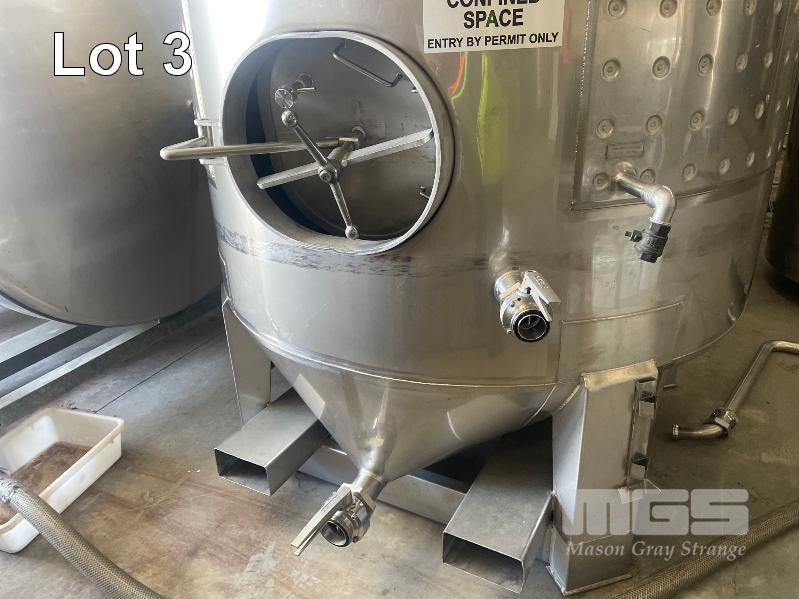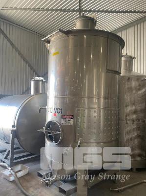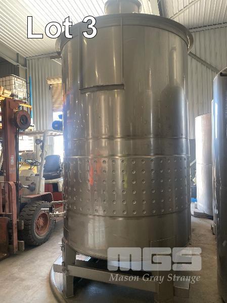 STAINLESS STEEL WINE TANK, 6,000 LITRE APPROX FORKLIFT POCKET BASE, BOTTOM VALVE, COOLING PLATE THERMOMETER POCKET & LADDER HOOK ID NO: SBVC1