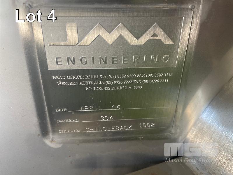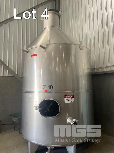 2006 STAINLESS STEEL WINE TANK, JMA ENGINEERING 10kl APPROX SUPPORT LEG BASE, VALVES, THERMOMETER POCKET & LADDER HOOK ID NO: Z10