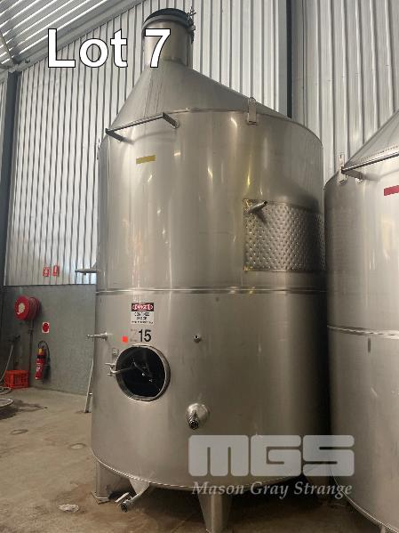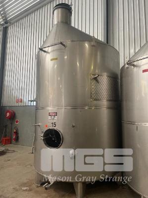 2006 STAINLESS STEEL WINE TANK, JMA ENGINEERING 15kl APPROX SUPPORT LEG BASE, VALVES, COOLING PLATE THERMOMETER POCKET & LADDER HOOK ID NO: Z15