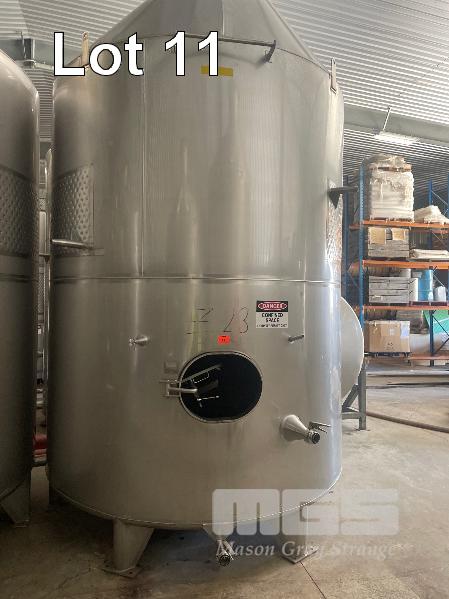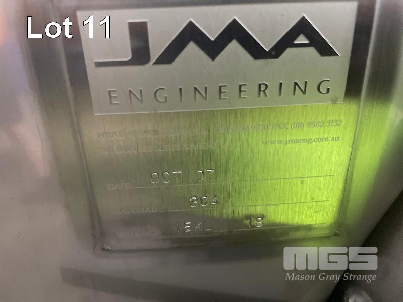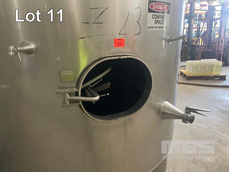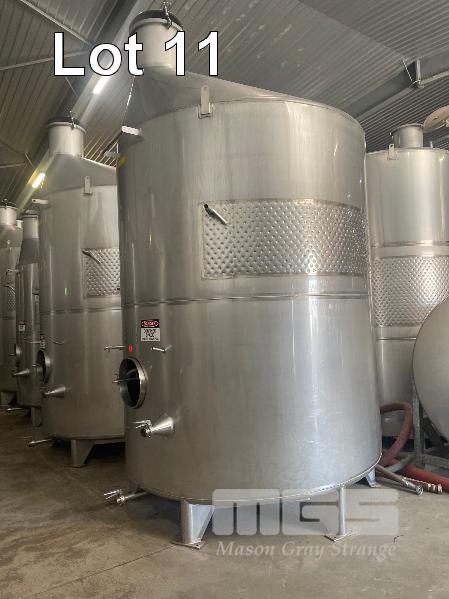 2007 STAINLESS STEEL WINE TANK, JMA ENGINEERING 15kl APPROX SUPPORT LEG BASE, VALVES, COOLING PLATE THERMOMETER POCKET & LADDER HOOK ID NO: Z23