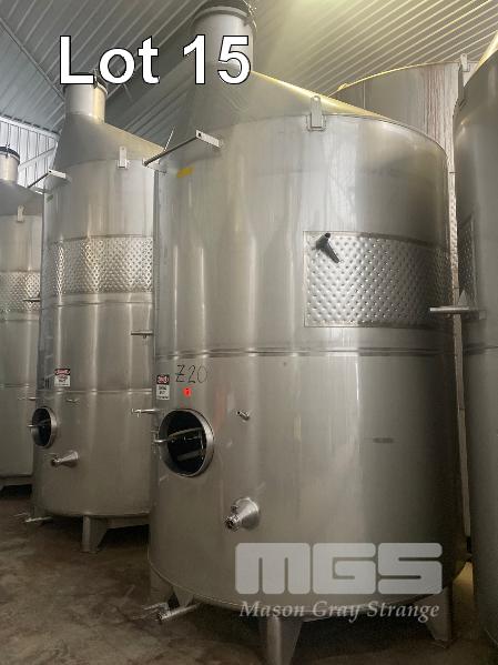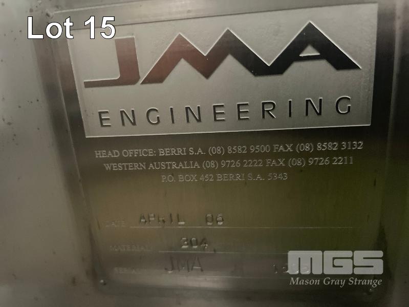 2006 STAINLESS STEEL WINE TANK, JMA ENGINEERING 15kl APPROX SUPPORT LEG BASE, VALVES, COOLING PLATE THERMOMETER POCKET & LADDER HOOK ID NO: Z20