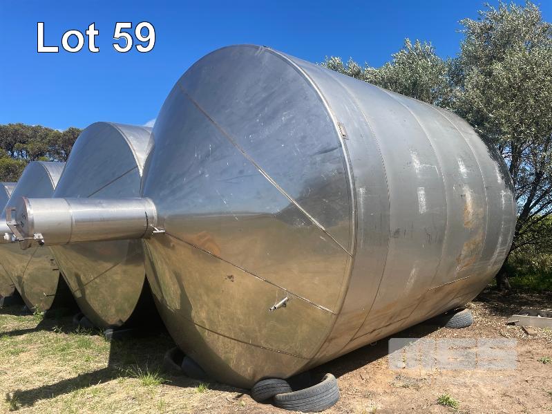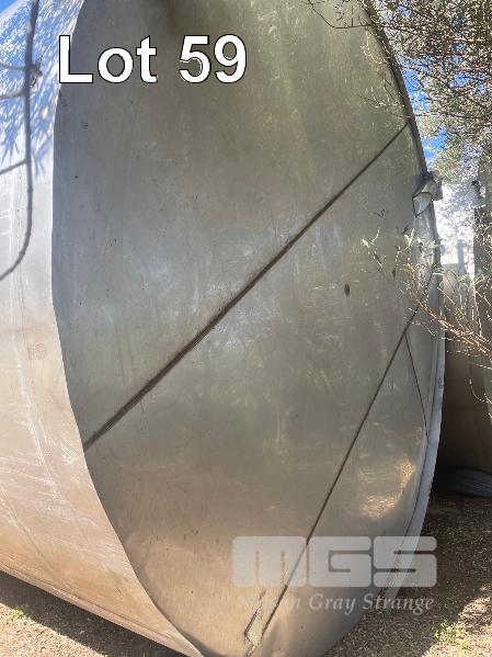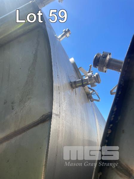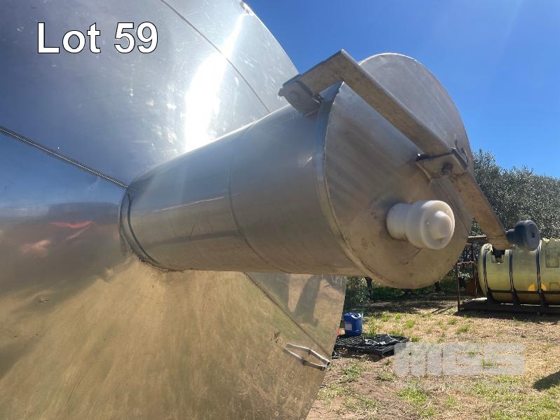 STAINLESS STEEL HOLDING TANK 50,000 LITRE APPROX WITH COOLING PLATE, VERTICAL, FLAT BOTTOM, INSPECTION HATCH, BOTTOM VALVES, RAISED LID & HATCH 5000mm (H) & 1100mm RAISED LID 3800mm DIAMETER NO: 45