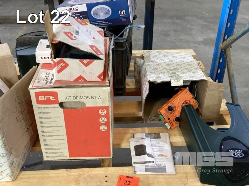 ASSORTED BACK UP BATTERIES, GATE MOTOR DRIVES, EXHAUST FAN ETC.