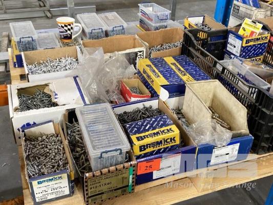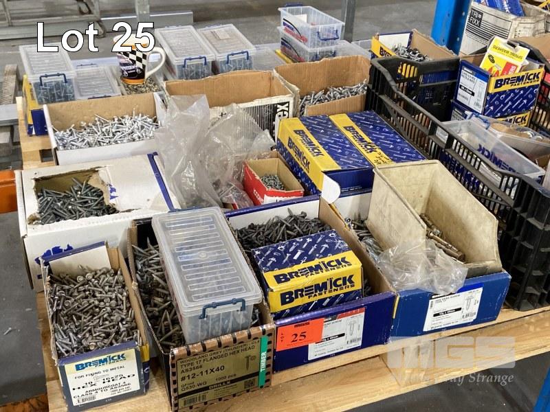 CONTENTS OF PALLET ASSORTED TEK SCREWS, LARGE QUANTITY, VARIOUS SIZES & COLOURS (25 BOXES)