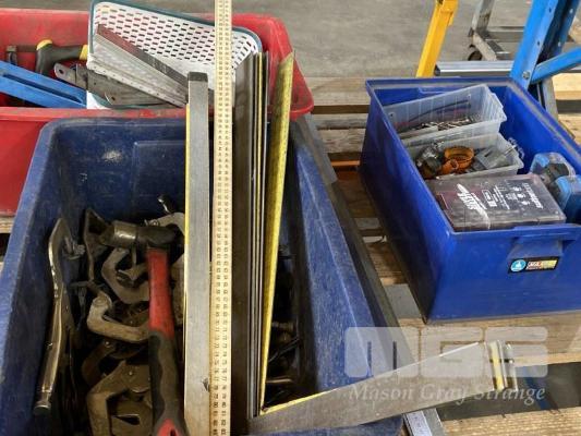 ASSORTED DRILL BITS, SQUARES, LEVELS & CLAMPS