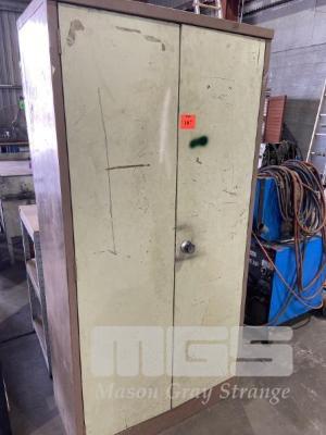STEEL CABINET, 2 DOOR, 1800 x 900 x 460mm + 3 TIER GALV SHELF UNIT 1140 x 550 x 900