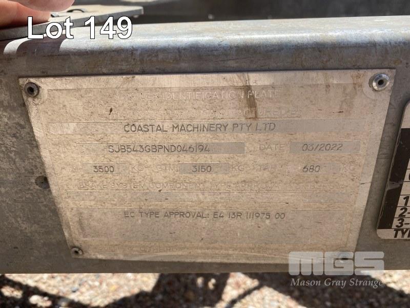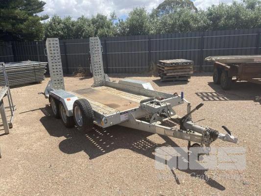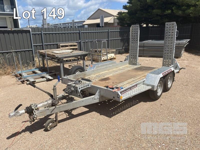 BRIAN JAMES, FLATBED TRAILER, DUAL AXLE DIGGER PLAT SERIES 2, PLANT TRAILER, REGO: S812TJK, VIN: SJB543GBPNDO46194, GTM: 3500kg, OVERRIDE BRAKES, WITH BRAKE AWAY CABLE, SPARE WHEEL ,JOCKEY WHEEL, FOLD DOWN RAMPS, GALV CHASSIS