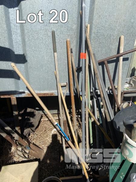 ASSORTED GARDEN TOOLS & TABLE